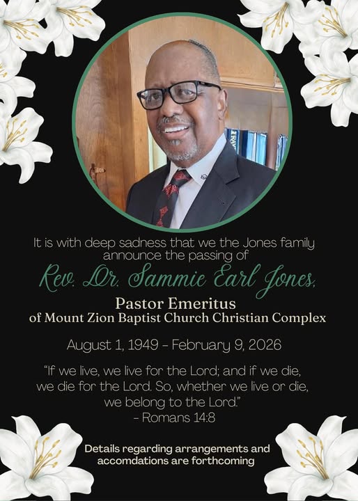 Homegoing information is here: Obituary | Rev. Sammie Earl Jones | Cotten-Branch Mortuary